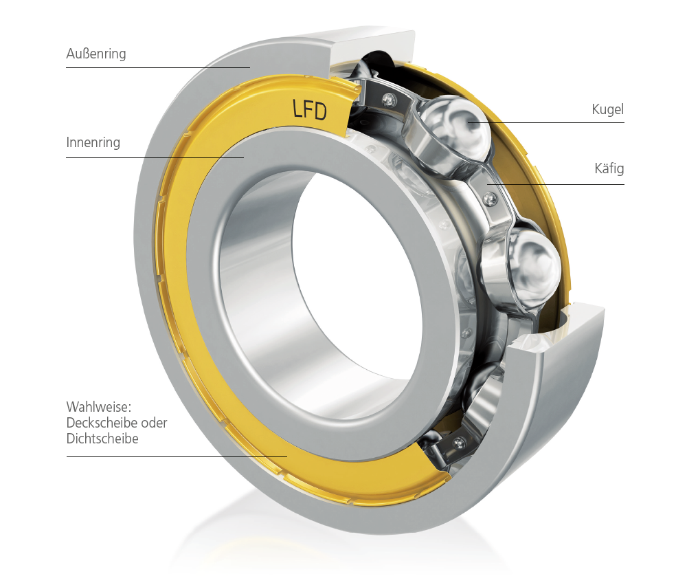 LFD Kugellager im Standardprogramm gibt es sowohl in offener Ausführung als auch mit Deck- und Dichtscheiben.